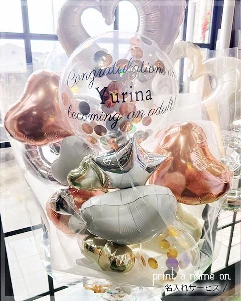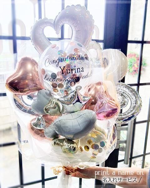 ![]() 店長から一言 | 成人式をお祝いする、特別な贈り物♪ 75cm!BIG SIZE! 手持ちタイプで、大きなサイズ感が存在感たっぷり。 清楚でおしゃれなデザインで、名前を入れるオプションもあり、贈る相手に特別感を演出できます。 20のバルーンを追加するオプションも用意しており、より華やかに演出したい方におすすめ。どんな会場でも目を引く存在感を放ちます。送料無料なので、お得に手に入れられるのも嬉しいポイント。 成人式当日に持参するのはもちろん、会場の装飾としても大活躍。一体感のある写真撮影や、大切な人へのサプライズギフトとしても最適です。 成人式のお祝いにぴったりなこのアイテムで、特別な日をさらに盛り上げましょう! すべてエアーバルーンのため、長持ち。 お名前はカートの上に記入欄がありますので、ご記入下さい。 >>成人式バルーン特集>> |